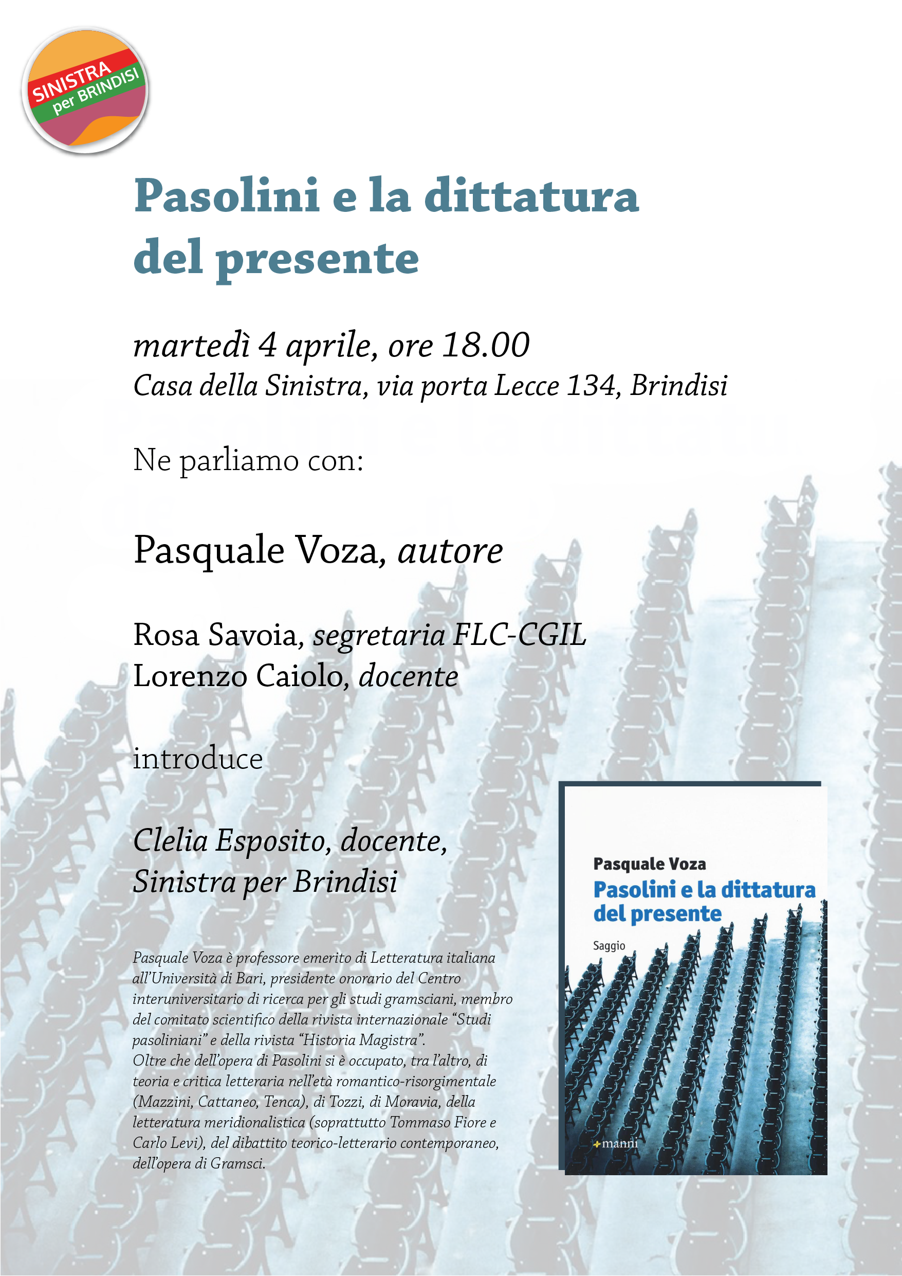 PRESENTAZIONE DEL LIBRO “PASOLINI E LA DITTATURA DEL PRESENTE” DI PASQUALE VOZA carmen0409 3 Aprile 2017