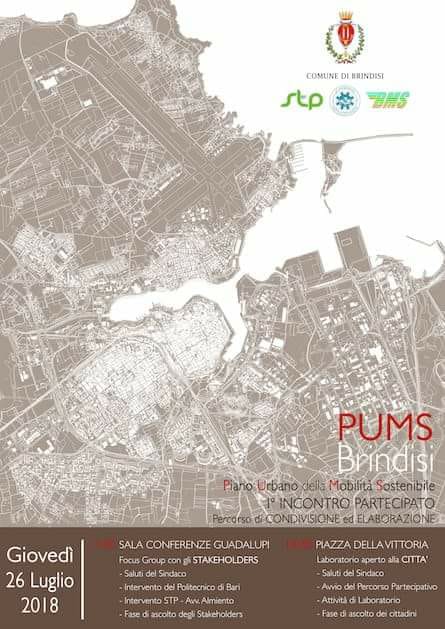 Il prossimo 26 Luglio a Brindisi si torna a parlare di PUMS, Piano per la Mobilità Urbana Sostenibile. Argomento di fondamentale importanza per il