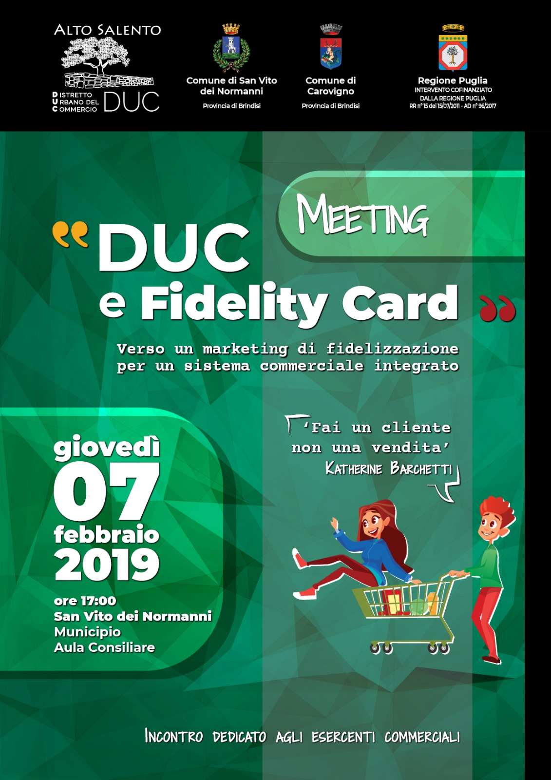 DISTRETTO URBANO DEL COMMERCIO – DOMANI INIZIATIVA A SAN VITO DEI NORMANNI SU “DUC E FIDELITY CARD” 6 Febbraio 2019