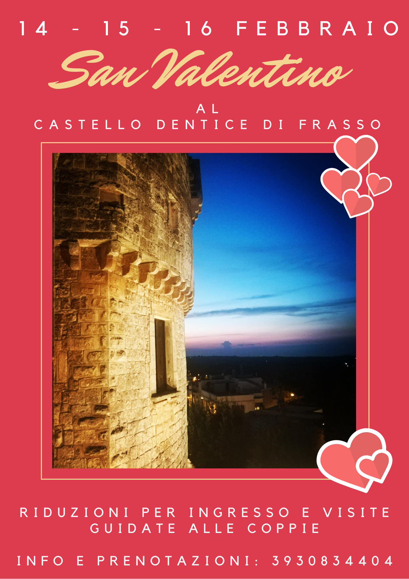 SAN VALENTINO AL CASTELLO DENTICE DI FRASSO DI CAROVIGNO: RIDUZIONI E VISITE GUIDATE A TEMA 14 Febbraio 2020