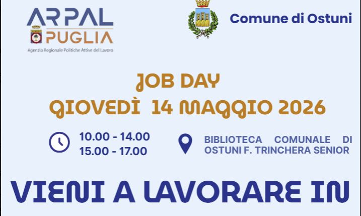In arrivo il Job Day “Vieni a lavorare in Puglia” in programma ad Ostuni per il 14 maggio