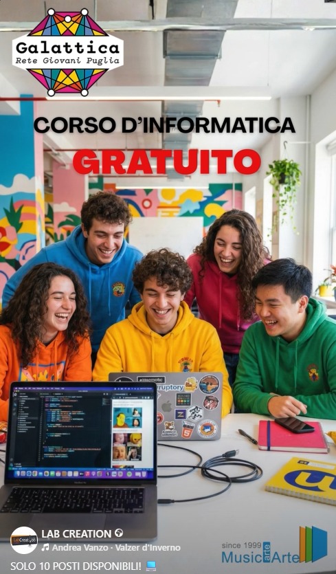 CORSO DI INFORMATICA GRATUITO A MESAGNESOLO 10 POSTI DISPONIBILI! Ripartono le attività formative del Nodo Galattica, organizzate dall’Associazione “Collettivo MusicArte” in collaborazione con l’Amministrazione comunale